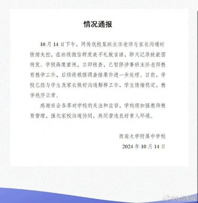 班級群發飆班主任被家長打系謠言,學校稱正安撫當事老師。為什么那么多人相信謠言?主要是因為真實的原因沒有公布,網民急于知道真相,謠言正好趁虛而入。要想阻止謠言,最根本的辦法就是公布事實真相,讓網民知道老師發飆的原因是什么?班主任的壓力實在是太大了,很多網民同情。