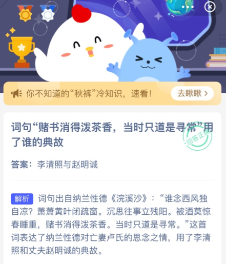 詞句賭書消得潑茶香當(dāng)時(shí)只道是尋常用了誰的典故 螞蟻莊園12月6日答案