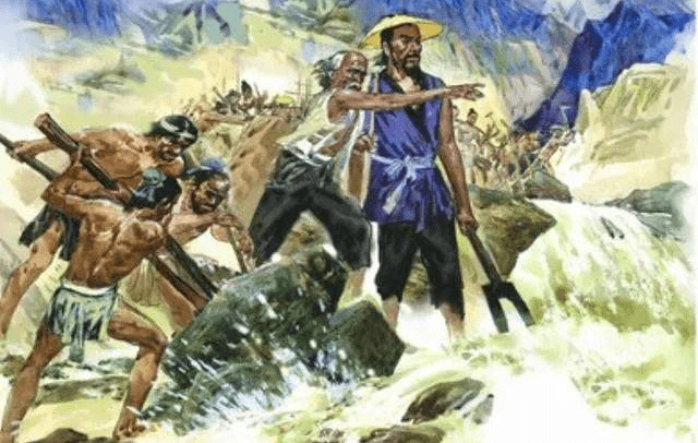 大禹率領民眾,與自然災害中的洪水斗爭,最終獲得了勝利。面對滔滔洪水,大禹從鯀治水的失敗中汲取教訓,改變了"堵"的辦法,對洪水進行疏導,體現出他具有帶領人民戰勝困難的聰明才智;大禹為了治理洪水,長年在外與民眾一起奮戰,置個人利益于不顧,"三過家門而不入"。大禹治水13年,耗盡心血與體力,終于完成了治水的大業。