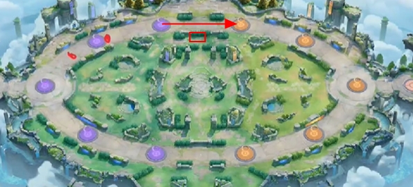 3、或者讓隊友站在圖中方框處,將野怪搶了,然后去箭頭處投分。