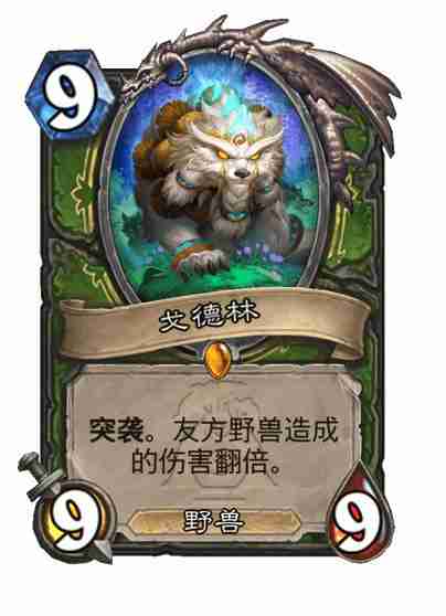 幽爪熊 (稀有隨從): 4費 5/2 突襲。亡語:強化你的英雄技能。