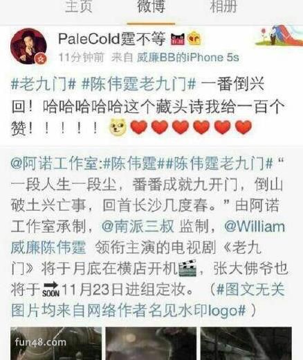 此劇官微,海報以及官微先后,都是陳偉霆1番。