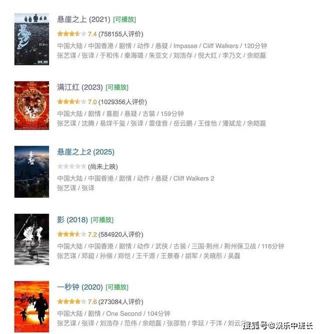 除了《堅(jiān)如盤石》陷入了輿論的谷底,張藝謀近兩年的作品頻頻上映,雖然有不少爭議,但他的評(píng)價(jià)一直保持在7分左右。