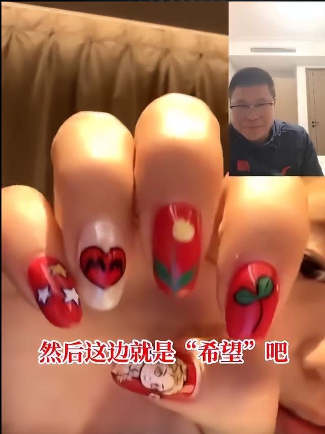 在采訪中,李夢展示了自己的美甲,左手有她自己的畫像。
