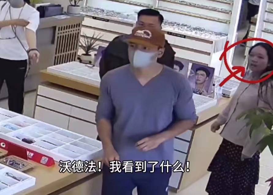 據老板發布的監控視頻顯示,10月22日中午,一位戴著棕色鴨舌帽和口罩的男子攜兩人進入店內選鏡。老板娘多次走近查看后確認是吳彥祖,立馬交頭接耳告訴老板,旁邊的工作人員示意其不要戳破。隨后,老板淡定配合其選鏡驗光,老板娘穿上大衣,對著鏡子整理儀容。