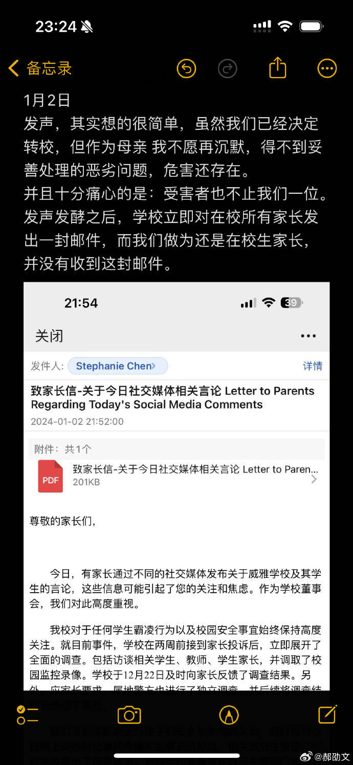 1月17日,郝劭文就繼女“被霸凌事件”再發聲:校方代表承諾學校將整改學校管理制度并且落實,私下向四位受害者家屬及孩子們道歉,但為了其他家長,校方不會對此公開道歉。