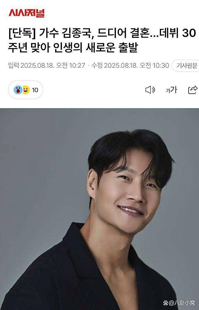 關于新娘身份,其所屬經紀公司Turbo JK Company表示:“她并非藝人,出于隱私保護考慮,不便透露更多細節。”經紀公司表示:“在出道30周年這一有意義的年份迎來新的起點,更加特別而有意義。希望大家能以溫暖的心意給予支持與祝福。”