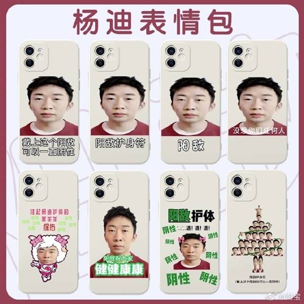 在某寶平臺上,“陽敵”手機殼的搜索量在半個月內就暴漲了2300倍,大家都希望借著這個諧音梗討個好運,希望自己不要陽,或者不要再陽。顯然,這是“楊迪”的諧音梗,手機殼上印著楊迪的大頭像,詼諧幽默的圖文也證明了網友們的想象力。