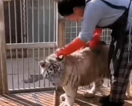 近日,河南濮陽,東北虎飼養員給狼送雞吃,兩只狼被嚇得瑟瑟發抖。當事人:我真沒打它倆,可能身上沾了東北虎的氣味。
