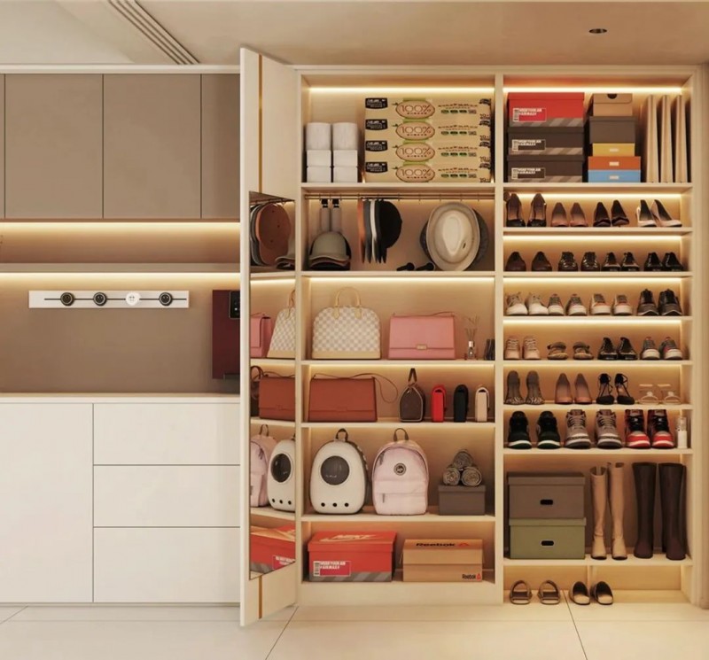 2)高頻區鞋柜做可移動層板,根據鞋子高度隨時調整。