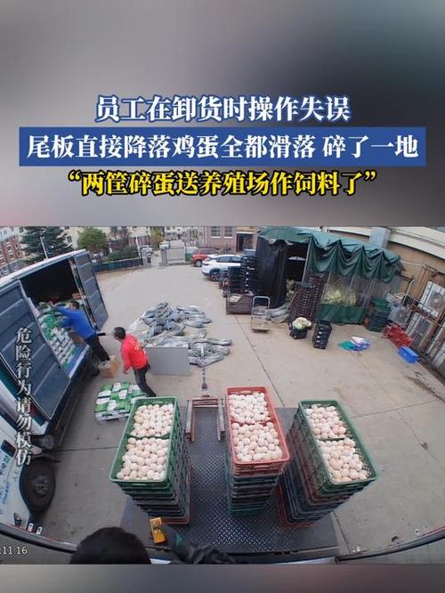 近日,威海的宮女士在社交平臺發視頻稱,自家員工不小心按錯了遙控器,導致數筐雞蛋齊刷刷地滑落到了地上摔碎。宮女士分享的視頻中顯示,倉庫中幾名工人正在搬運貨物,數筐雞蛋擺放在貨車門板上,一位員工按下遙控器之后所有雞蛋整齊地滑了下去,隨之雞蛋破碎一地,蛋液橫流。