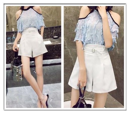 搭配六:露肩流蘇上衣+闊腿短褲
