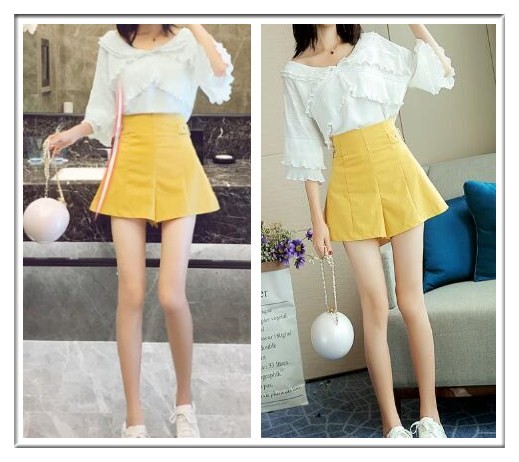 矮個子女生夏季的時候這樣搭,白色翻領上衣+黃色休閑短褲,簡約的設計,低調內斂的色系,散發出女性獨特的優雅知性氣質,溫婉的女人味,小個子女生也能超有氣質的。