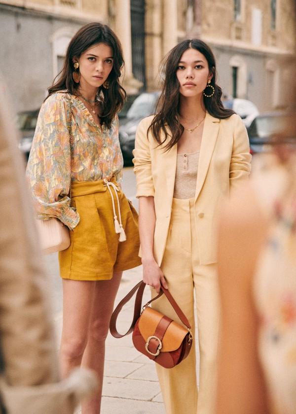 以前這類上衣更多被拿來搭配修身短褲或牛仔短褲,但今年A字短褲的離體感更多了一份從容高級。哪怕是非常密集的碎花或艷麗的亮色,也不俗氣。