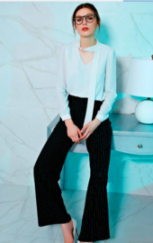 上裝:白色主旋律的粉色+翠綠色襯衫,粉白色運動外套
