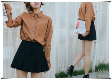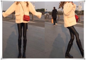 下裝:淺駝色亞光皮短褲,西裝褲+紅棕色、灰黑色油亮長筒靴
