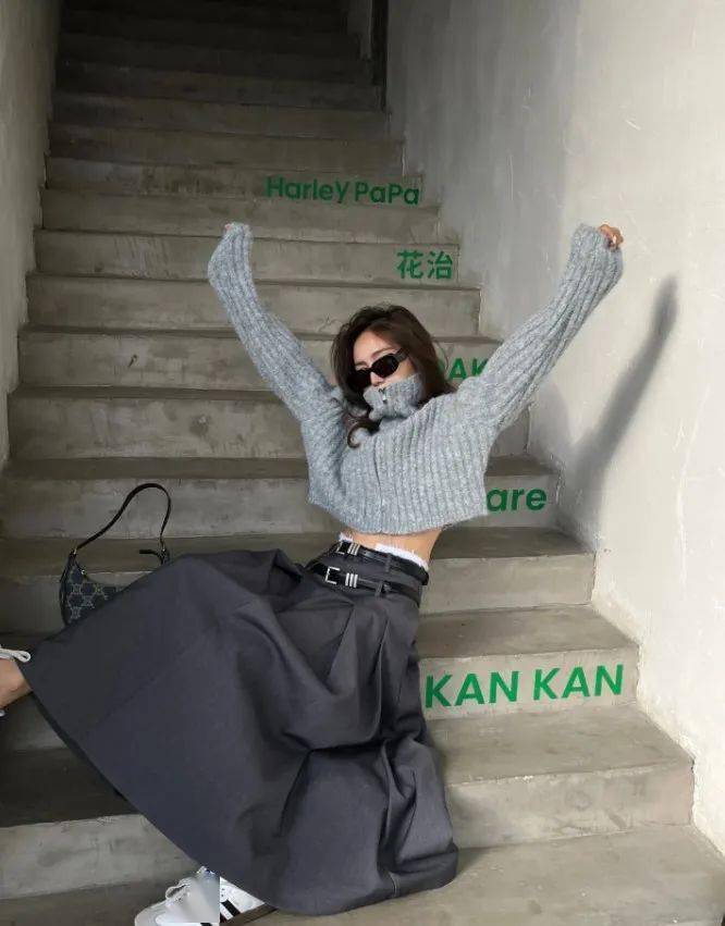 內搭包臀裙,秋冬也是最性感的辣妹。