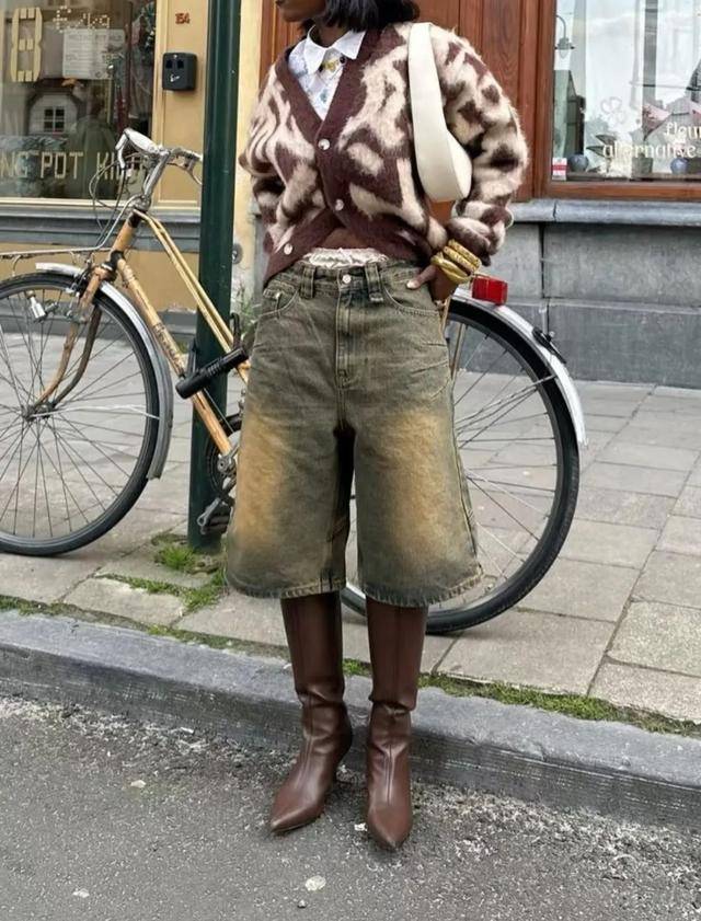最近的博主們也很偏愛超闊腿中褲配長筒靴。中褲一定要選本身偏硬挺的材質,會穿在身上能形成自然的A型,不貼腿自然就能模糊腿部線條。