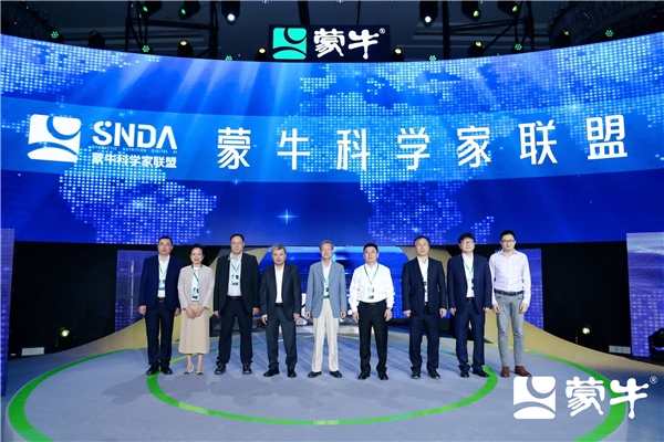 當天活動的最后,舉行了蒙牛SNDA科學家聯盟的簽約儀式。“SNDA”取自合成、營養、數字化、人工智能四個詞英文的首字母縮寫,表達了蒙牛期望突破專業壁壘,推動多學科創新生產力賦能營養健康行業創新研發與轉化的愿景。中國科學院院士李林、趙國屏、陳潤生、鄧子新等知名專家作為聯盟全球聯合發起人代表,與蒙牛集團副總裁、全球研發創新負責人溫永平一同上臺,為引領全球乳業未來的產品創新按下加速鍵。