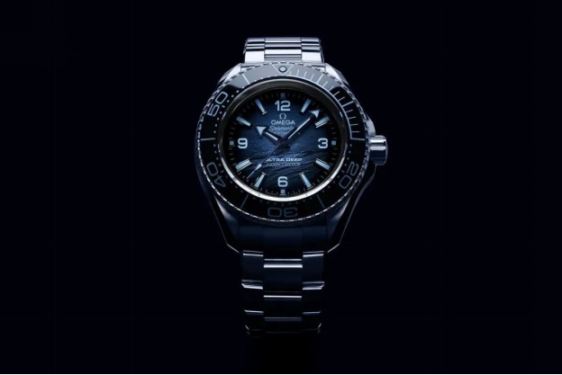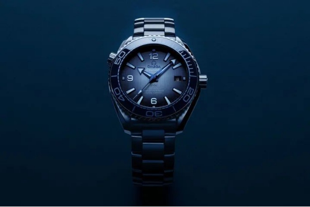 這次歐米茄海馬75周年紀念款的表盤,雖然每一款的質感都不同,卻都采用了漸變藍色的暈染效果,歐米茄稱之為“Summer Blue”。但是根據每個款式所能承載的下潛深度不同,表盤采用的藍色色調也不同,基本上對應照光層,弱光層,深海層,深淵層的不同深度下海水呈現的效果。比如6000米已經到了海底的深淵層,這個深度是需要探照燈照明的,那海洋宇宙Ultra Deep 6000M專業潛水表表盤的藍也就更加深邃,幾乎接近黑色。