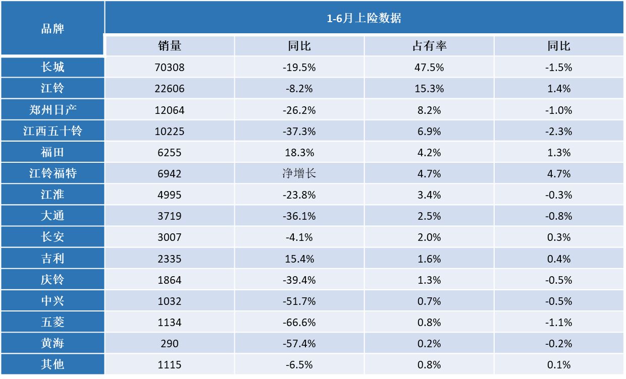 在最新發布的2024上半年汽車行業報告中,皮卡市場整體銷量遭遇嚴峻挑戰,同比銷量下滑16.9%,這一數據無疑為整個行業蒙上了一層陰影。市場普遍低迷下,皮卡頭部品牌如長城皮卡、鄭州日產等也不能幸免,均出現不同程度的銷量下滑,同比數據分別下降19.5%和26.2%,江西五十鈴更是同比銷量下降37.3%,縮幅超三分之一,這些無不透露出整體行業承受了巨大壓力。