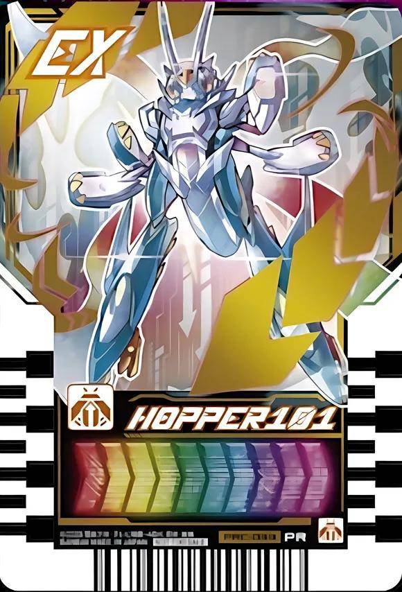 這里我們可以看出這次的這個蝗蟲101完全是進化為了一個機器人的樣子,看上去也是霸氣了很多,同時相應的點數也是變成了EX,而這張卡是劇場版的特典卡,由此也是可以推斷這張卡應該就是劇場版的限定形態變身使用了。