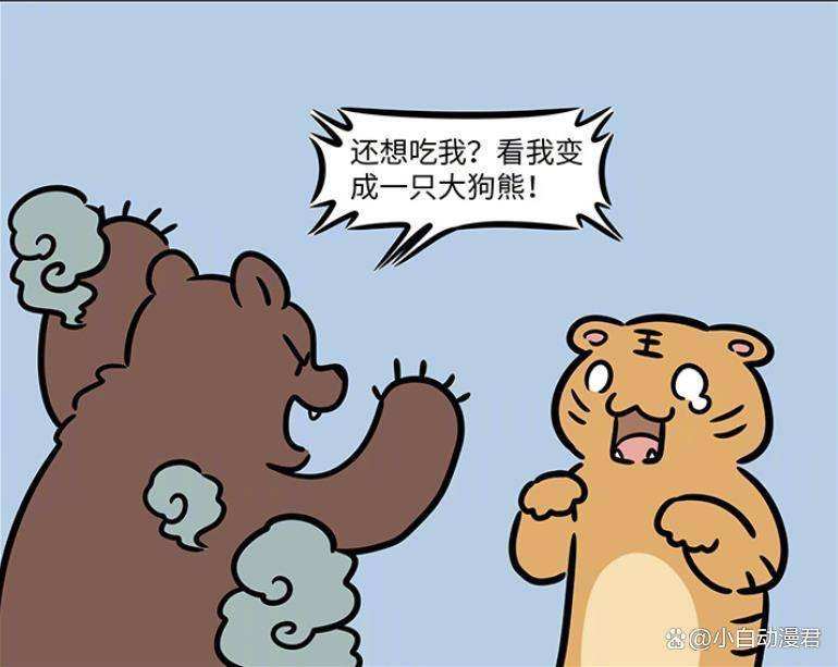 看著變成小老虎嚇唬自己的九月,十一月手里的油條瞬間也不香了,他化形成大狗熊的模樣,這突如其來的轉變直接把九月給嚇住