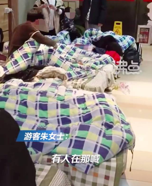 當事人朱女士表示,酒店工作人員拉客的時候,說有好幾張床,但是交了錢到了現場后,才說沒床位了,讓他們都住在大廳里。