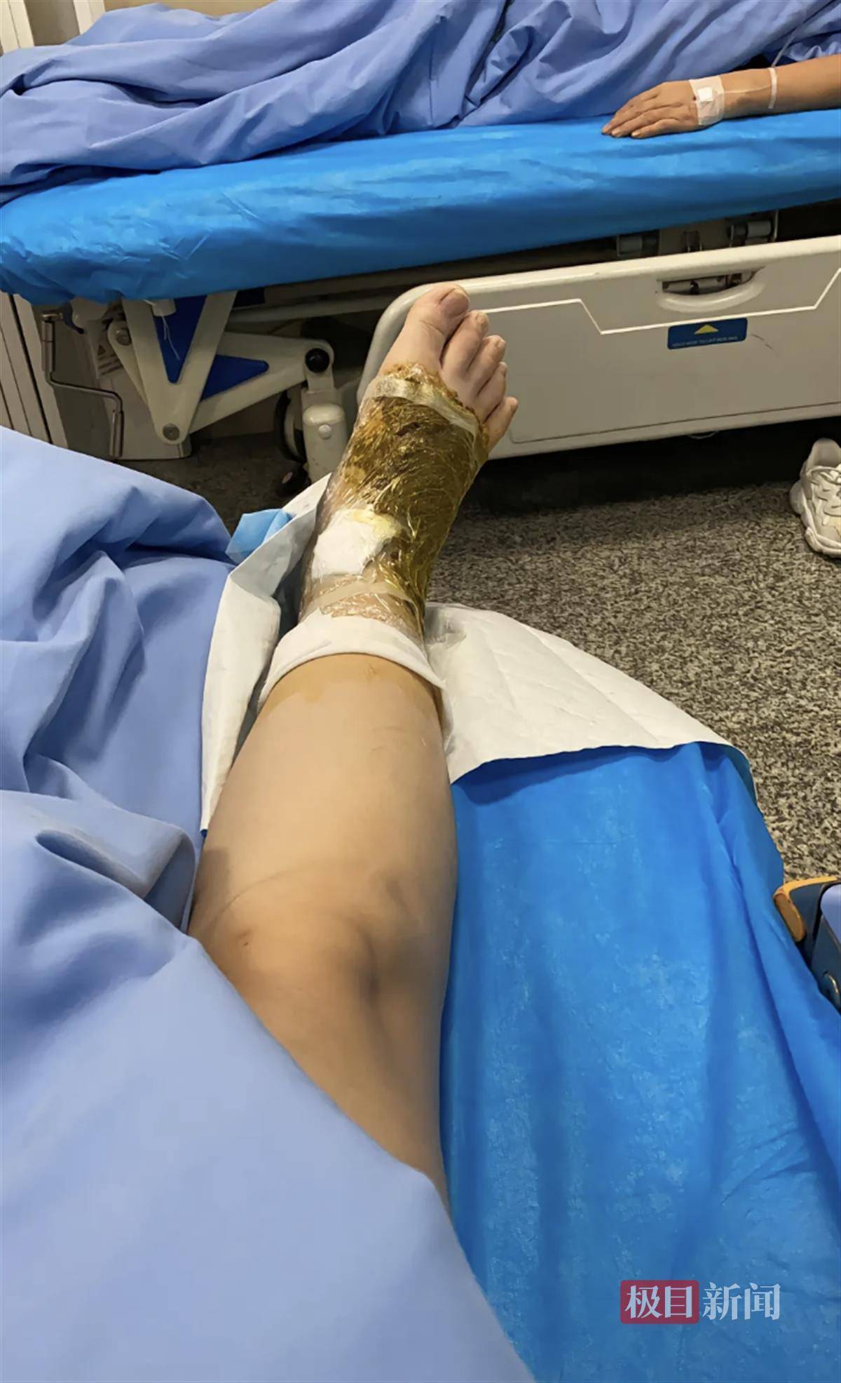 傷者腳部已敷藥(圖片來源:當事人短視頻賬號)