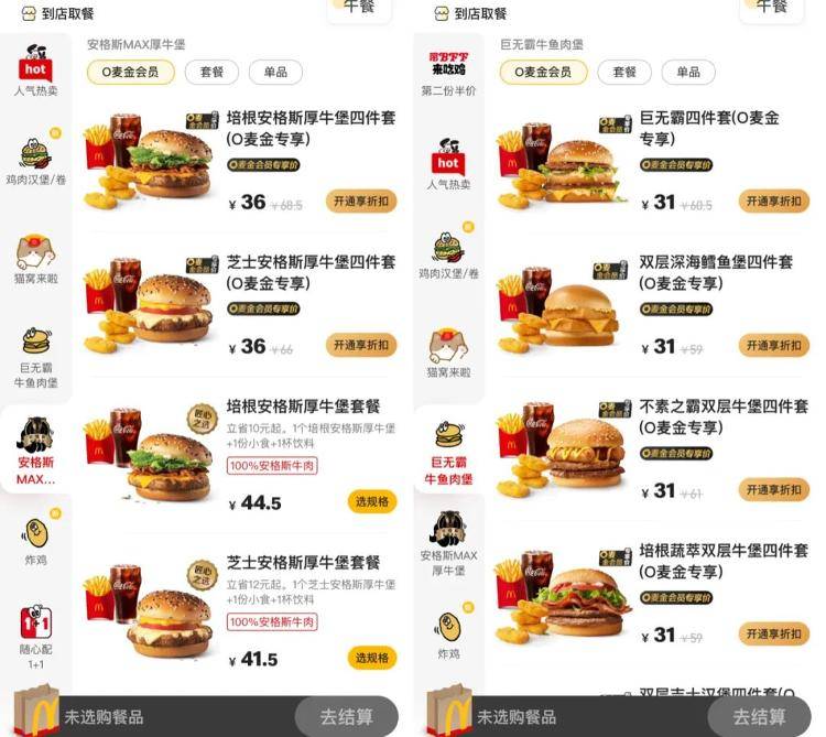 北京市東城區與西城區多家麥當勞門店,漢堡小食類產品中,中份薯條的價格從13元漲至14元,一塊裝的麥麥脆汁雞的價格從14元漲至14.5元,脆脆薯條的價格從14.5元漲至15.5元;漢堡與套餐中,培根安格斯厚牛堡套餐的價格從42.5元漲至44.5元,巨無霸四件套(O麥金專享)的價格從30元漲至31元,板燒雞腿堡的價格從23元漲至23.5元。