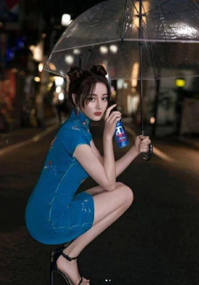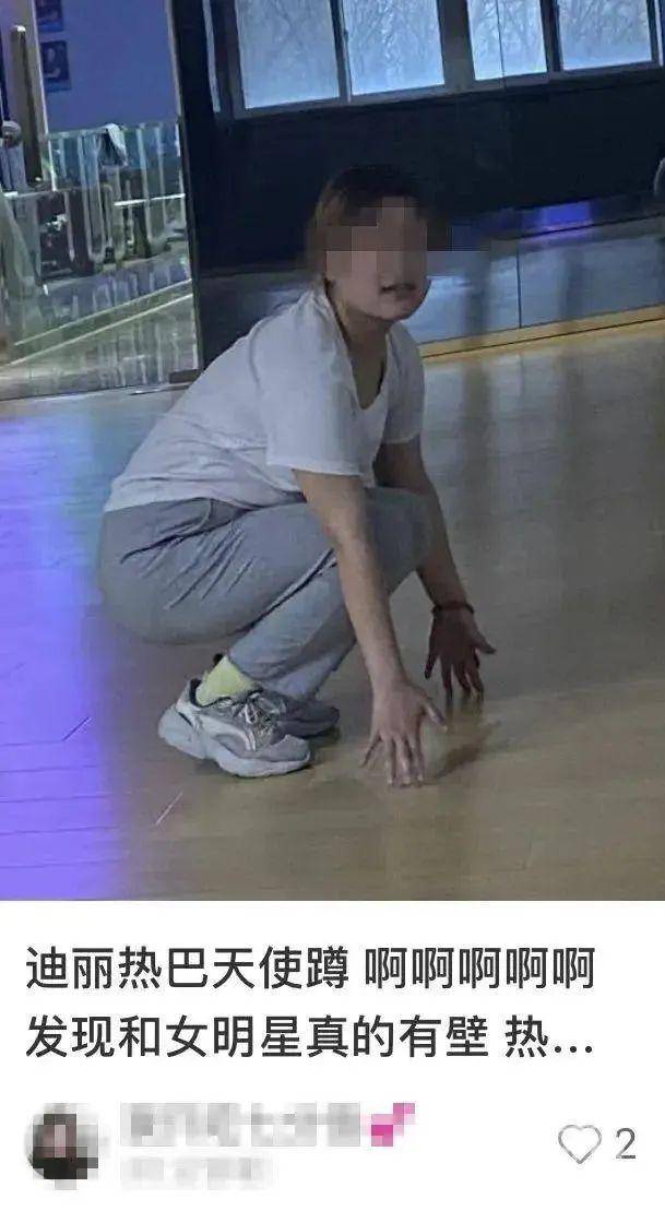 這個拍照姿勢,不是迪麗熱巴第一次用了,之前她曾穿著高跟鞋做出類似蹲拍動作。