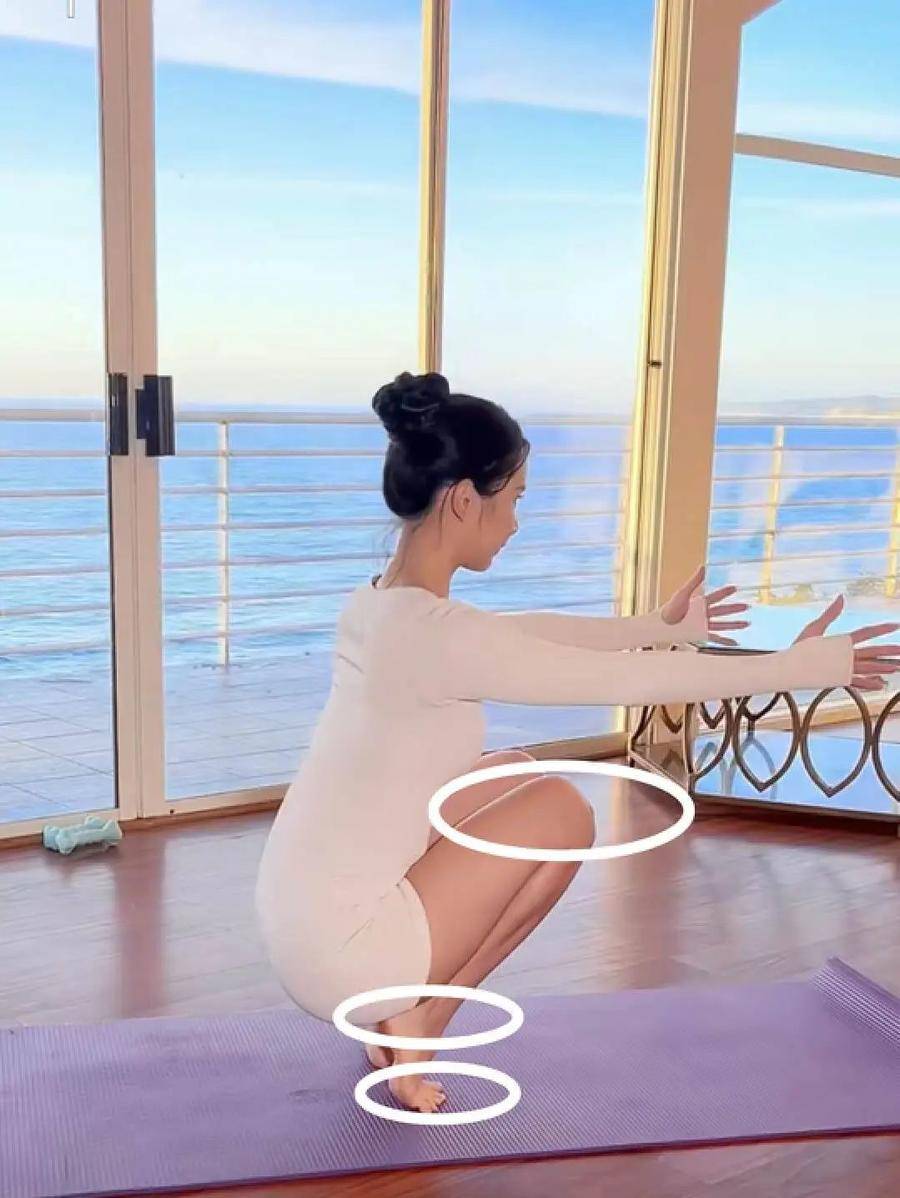 但是,在做這個動作時,如果腳踝出現疼痛,不能踮起腳尖,便不可強求,可以先練習簡易版的蹲坐式。如果重心不穩,或膝蓋疼痛可以先靠墻輔助練習。保持脊柱的延伸感,不要聳肩,膝關節不要內扣和外翻,以免產生壓力造成損傷。