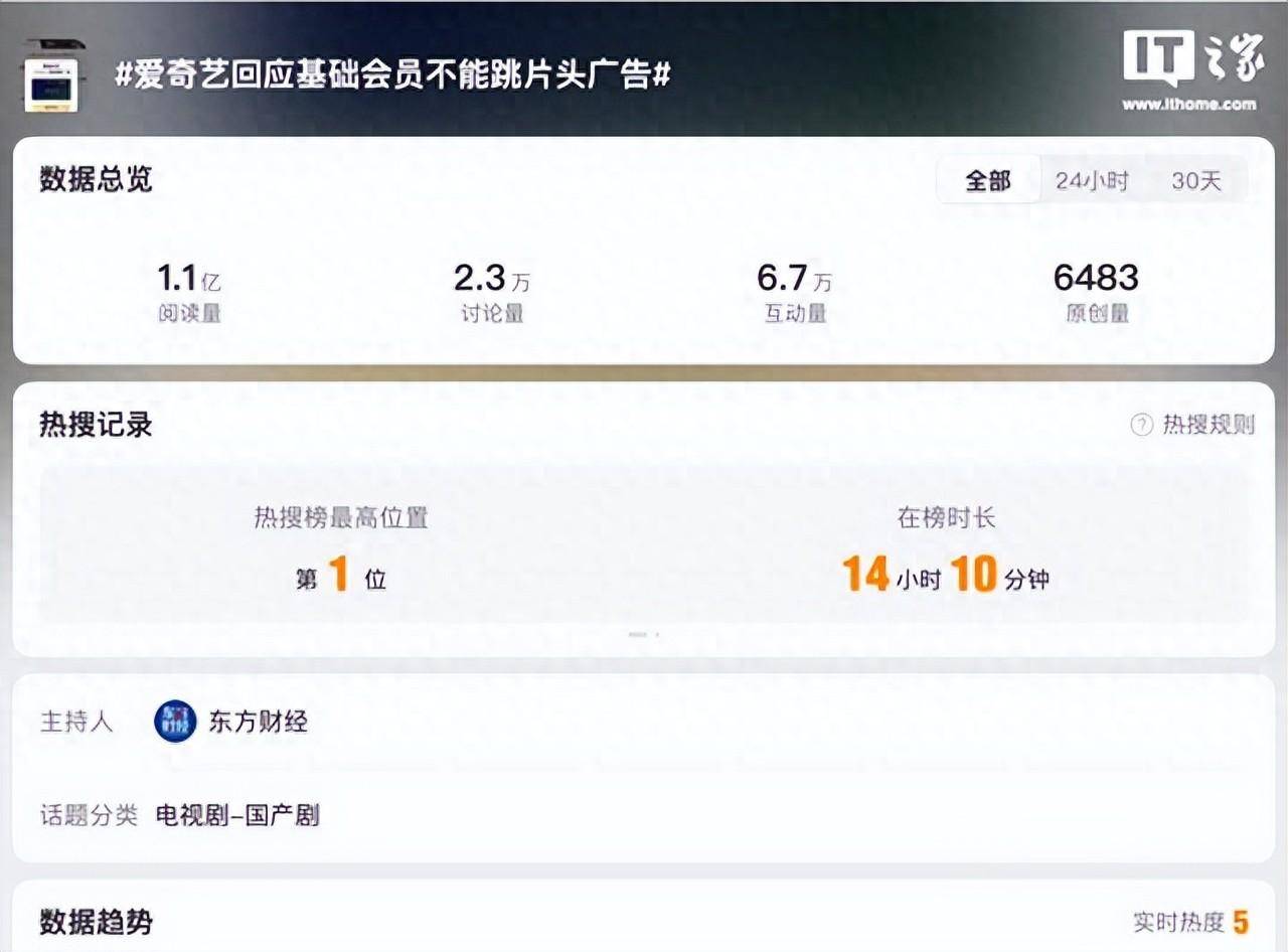 今年7月15日,多名網友吐槽愛奇藝基礎會員無法跳過視頻片頭的120秒廣告,多個相關話題登上微博熱搜榜。