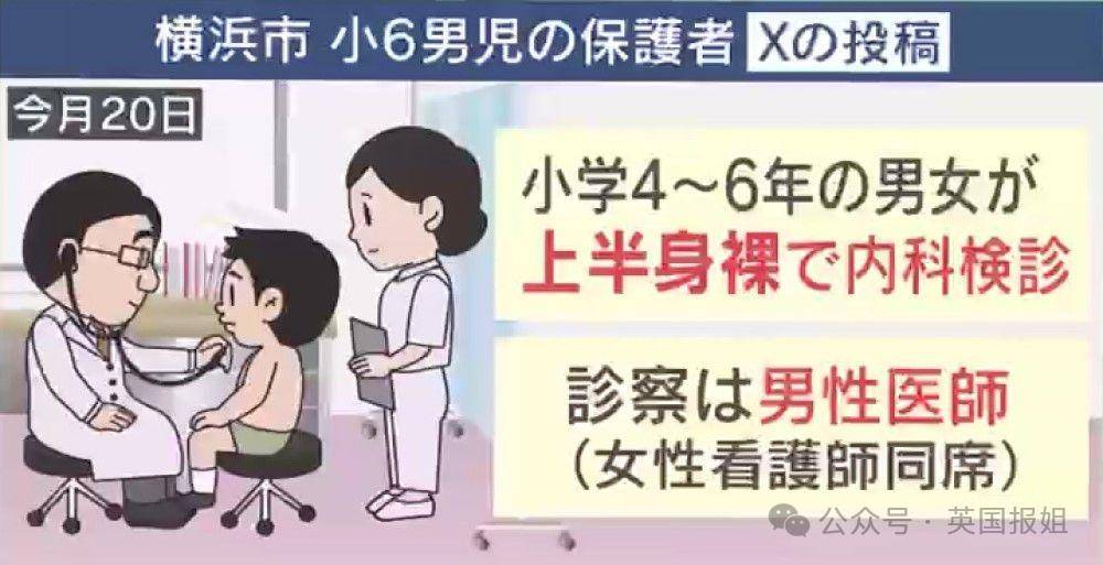 富士電視臺的報道指出,依據日本《學校保健安全法》,從小學到高中的學生均需接受年度體檢,通常于每年5月至6月在學校內統一進行。然而,關于體檢時學生是否需要脫衣,并無全國統一的明確規定,而是由地方教育委員會與衛生護理人員自行決策。因此,出現了不同學校間體檢標準差異懸殊的現象,有的學校僅要求學生將衣物卷起至胸部以上,而有的則要求學生完全赤裸上半身,包括女生脫去胸罩,引發了巨大的爭議。