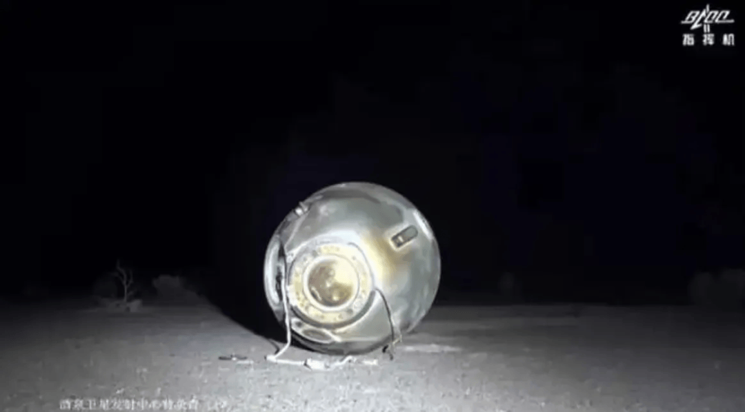 1時(shí)24分,神舟十八號(hào)載人飛船返回艙在東風(fēng)著陸場(chǎng)預(yù)定區(qū)域成功著陸,在一片駱駝刺的圍繞下,空中搜救分隊(duì)的直升機(jī)也相繼在附近降落。航天搜救團(tuán)隊(duì)又一次在黑夜里實(shí)現(xiàn)了“艙落機(jī)臨人到”的承諾。