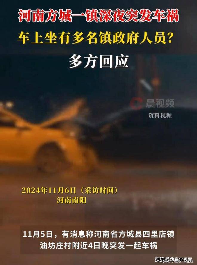 11月6日,紅星新聞記者從南陽市官方渠道獲悉,11月4日晚方城縣四里店鎮轄區內確實發生一起致四人死亡的交通事故。經核實,四名死者均為方城縣四里店鎮人民政府的工作人員,其中包括公務員身份和事業編人員。