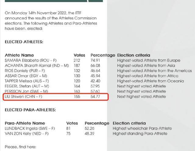 早在10月31日,劉詩雯就發文稱自己成為國際乒聯運動員委員會委員候選,競選宣言是“傾聽你的聲音,共享魅力乒乓!”希望借此機會讓運動員的聲音被聽到,加強各協會、各年齡層運動員之間的交流,同時鼓勵帶動更多女性參與到乒乓球這項運動當中。