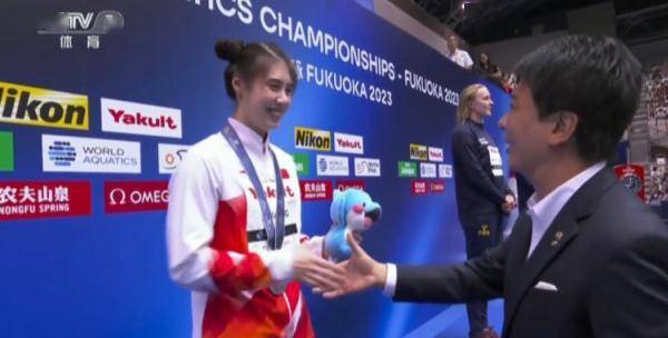 賽后,張雨霏換上“哪吒”造型的發(fā)型,登上了領(lǐng)獎臺。