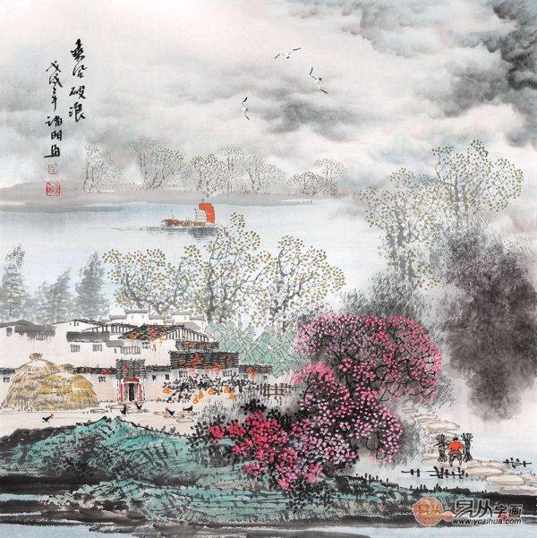 【 書房小點評】諸明這幅《乘風破浪》描寫的雖是江南景物,但正如水一樣,利萬物而不爭,用自身的柔美達到撥千斤的效果。雖然沒有太過昂揚夸張的筆墨,但作品中楊帆遠航的青帆正乘風破浪,盡管前路障礙重重,堅信乘風破浪的時機定會到來,到那時,將揚起征帆遠渡碧海青天。激勵人們在前行的道路上盡管坎坷重重,也要繼續努力,乘風破浪,相信總有一天會一展宏圖。作為書房裝飾掛畫也能夠時刻提醒自己“行路難!行路難!多歧路,今安在?長風破浪會有時,直掛云帆濟滄海”。