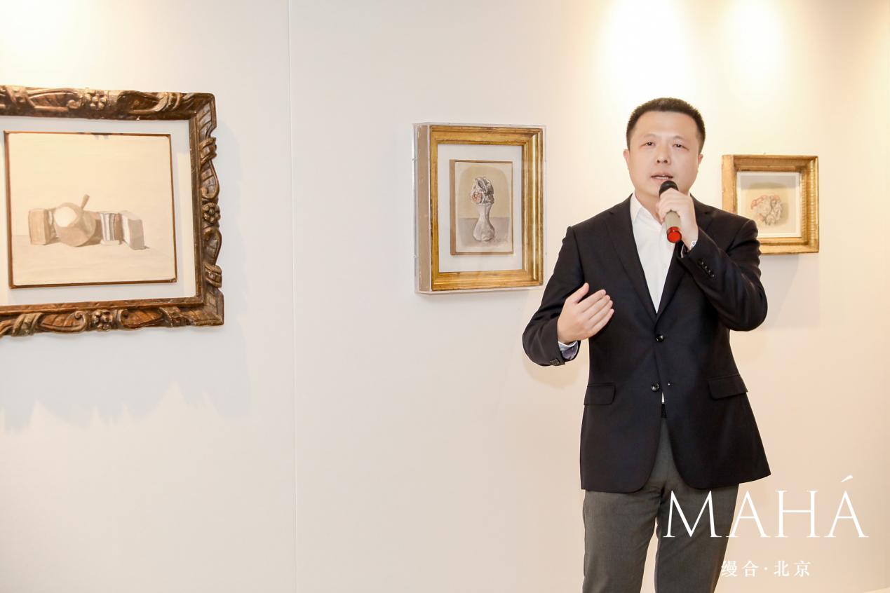 11月27日下午,預展活動正式開啟。活動開幕式中,縵合·北京項目總經理張宇翔先生首先對到場的業內頂級收藏家、嘉賓以及縵合·北京業主表示歡迎,他講道:“莫蘭迪影響了幾代人對于審美的追求與憧憬,寧靜內斂,沒有色彩的激烈碰撞,看似普通卻彰顯著時代的審美趨勢,這也與Adrian Zecha先生、與縵合·北京所倡導的‘簡單 而品位不凡’‘重獲偉大的寧靜’的理念有著精神上的契合”,并表示非常有幸與木木美術館共同合作,于縵合·北京分享喬治·莫蘭迪的藝術創作,共鑒原作色彩的藝術魅力,在全球莫蘭迪濃度最高的地方,收獲內心的偉大寧靜。