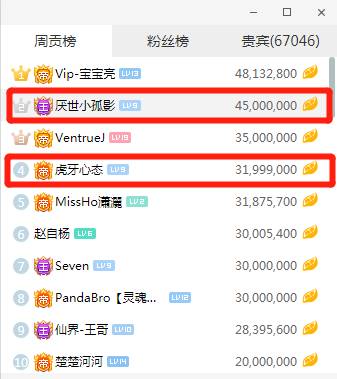 而昨晚的首秀場(chǎng)景更是相當(dāng)夸張,虎牙的各大人氣主播都來(lái)刷禮物,出手就是藏寶圖,相當(dāng)有牌面,孤影、心態(tài)、小仔爺、空伐一個(gè)都沒落下,尤其是心態(tài),禮物刷的根本停不下來(lái),而各大主播為了歡迎張大仙,更是將直播間改名。昨晚的人氣更是突破了2600萬(wàn),貴賓數(shù)遠(yuǎn)超10萬(wàn),當(dāng)之無(wú)愧的一哥。