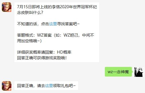 7月15日即將上線的李信2020年世界冠軍杯紀念皮膚叫什么?這是2020年王者榮耀7月14日微信每日一題的問題,大家知道這個問題的答案嗎?回答正確可獲得每日有禮答題智勝的抽獎資格,有機會獲得永久皮膚哦。下面小編就為帶來了今日王者榮耀每日一題答案,一起來看看吧。