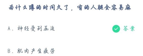 原標題:螞蟻莊園5月14日答案 為什么蹲的時間久了有的人腿容易麻