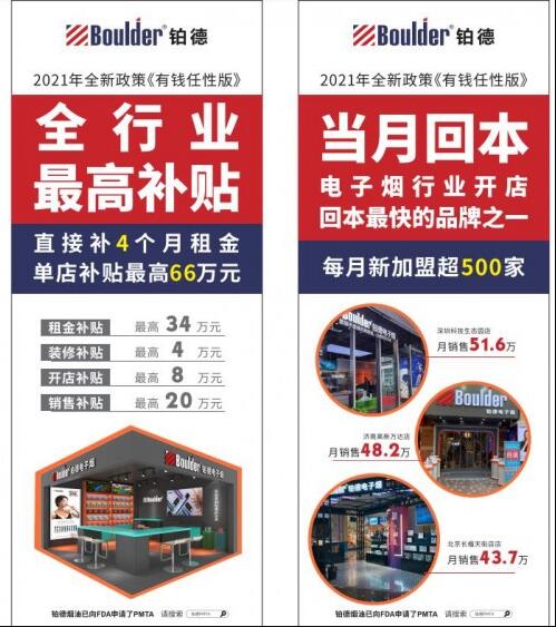 說是補貼政策,但鉑德的招商令堪稱業內最詳細開店手冊,開店直補四個月房租,裝修、培訓還帶額外補貼,買煙彈送煙桿的費用不僅鉑德報銷還會額外算成加盟商的業績。換句話說,鉑德不僅是在手把手教加盟商開店,更是用“財力”護航,給商家一份近乎“無本”的買賣。