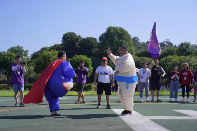 上午9點,全體人員前往光明村基地湖心小島參加運動會,迅速分成10個小組過后大家就投入了激烈的運動項目中去了。此次運動會共包含6項活動——皮劃艇競賽、海洋球大戰、相撲斗雞、螃蟹跑、拔河大賽、丟沙包,既有單人競技項目,也有團體協助項目,在充分娛樂的同時也培養同事之間的合作精神。