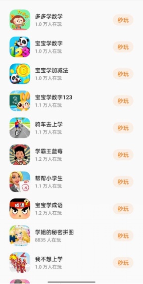看到如此精細的分類,不少網友發(fā)問,究竟歡太小游戲適合什么年齡段的人玩?除了適合“大朋友”玩的休閑游戲之外,歡太科技還考慮到家長帶孩子的不易,在歡太小游戲上架了大量適合孩子玩的益智類游戲,比如在歡太小游戲首頁的【特色合集】中便有【小朋友的最愛】系列游戲,讓家長與孩子可以一起度過美好的親子時光。此外,歡太科技也注意到了幼兒園時期小朋友的學習需求,在歡太小游戲上架了多款學習類游戲,幫助孩子鞏固舊知識、學習新知識。