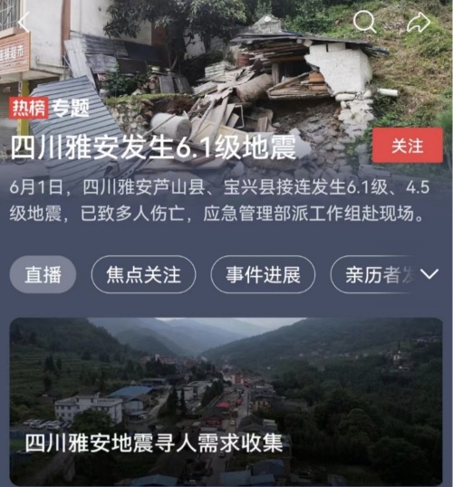為幫助人們尋找震區親友,頭條尋人依托今日頭條和抖音,第一時間上線了“四川雅安地震尋人需求收集”服務。6月2日13時許,求助者汪女士通過頭條尋人的幫助,成功確認了其寶興縣失聯好友的安全。