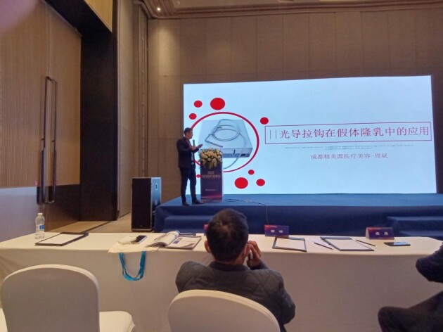 本次盛會,2022年度先進個人得主,精美源周斌院長為大家分享了《光導拉鉤在假體隆乳中的應用》。