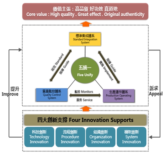 3是核心的“三體系”。標準集成體系:種質、環境、種植、炮制、物流,分為1級指標、2級指標、3級指標,嚴格按照統一標準管理。比如環境,對生態、產地、地塊都有嚴格的要求,包括海拔降雨、大氣土壤等等。