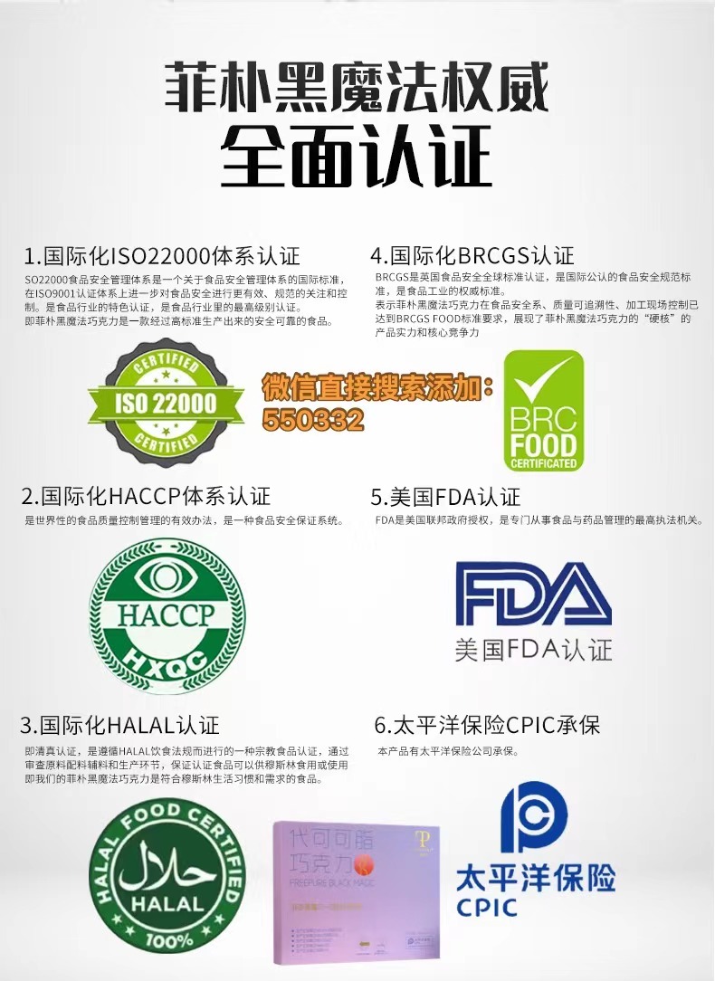 菲樸黑魔法減肥巧克力不僅具備卓越的瘦身效果,還注重產品的健康與安全。在制造過程中,我們嚴格遵循零添加原則,沒有添加任何違禁成分、反式脂肪、人工色素、香精香料、農藥殘留、藥物毒性或激素。我們致力于為用戶提供安全可靠的減肥選擇,讓他們能夠擁有健康瘦身的美好體驗。